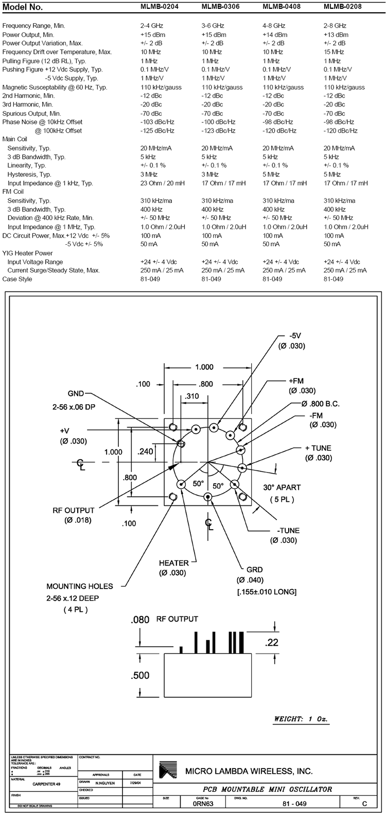 The MICRO LAMBDA MLMB-Series Miniature YIG-Tuned Oscillators are signal sources covering the frequency range of