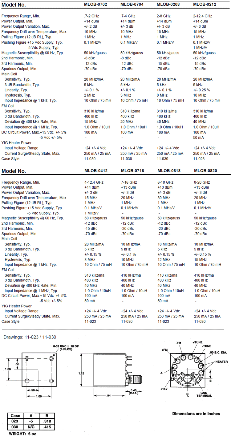 MICRO LAMBDA MLOB-Series 1.25" square YIG Tuned Oscillators cover octave and multi-octave bands