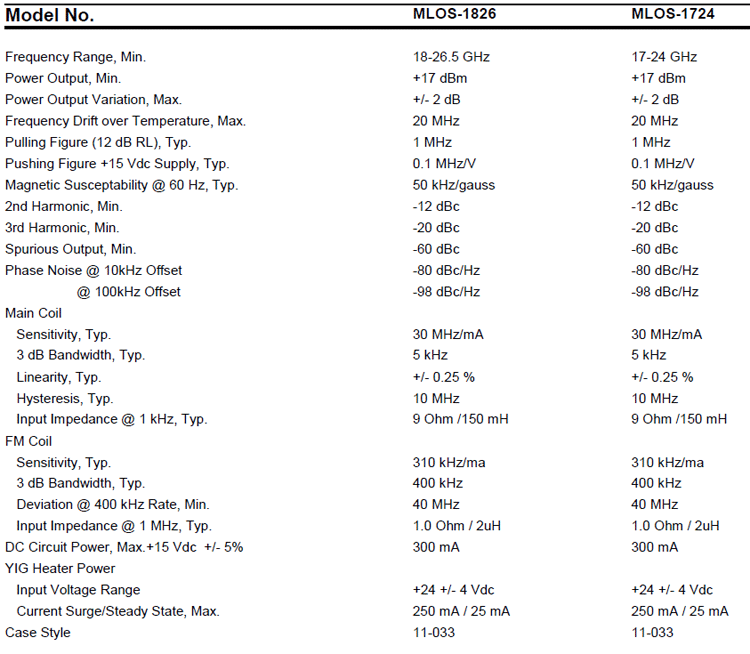 or fine tune the output signal. These oscillators are ideal for use in spectrum analyzers, sweep generators, receivers