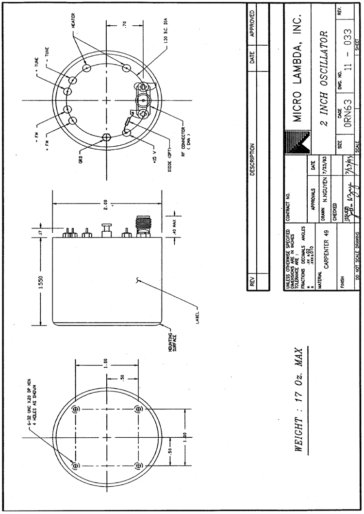 +16 dBm minimum output power over the 17-26.5 GHz frequency band. These oscillators are biased from a