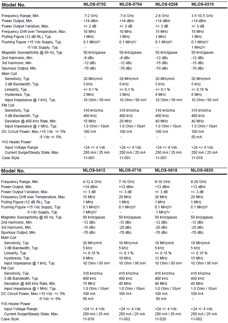 MICRO LAMBDA MLOS-Series 1.75" cylinder YIG Tuned Oscillators cover octave and multi-octave bands