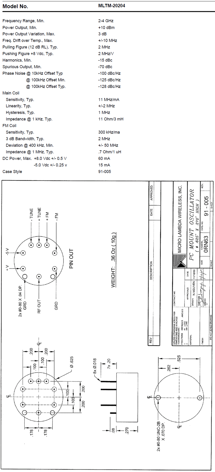 The MICRO LAMBDA MLTM-Series Miniature YIG-Tuned Oscillators cover the frequency range of 2-4 GHz.