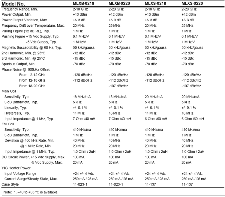 band of 2-18 and 2-20 GHz. This oscillator series offers SUPERIOR PHASE NOISE performance of –112