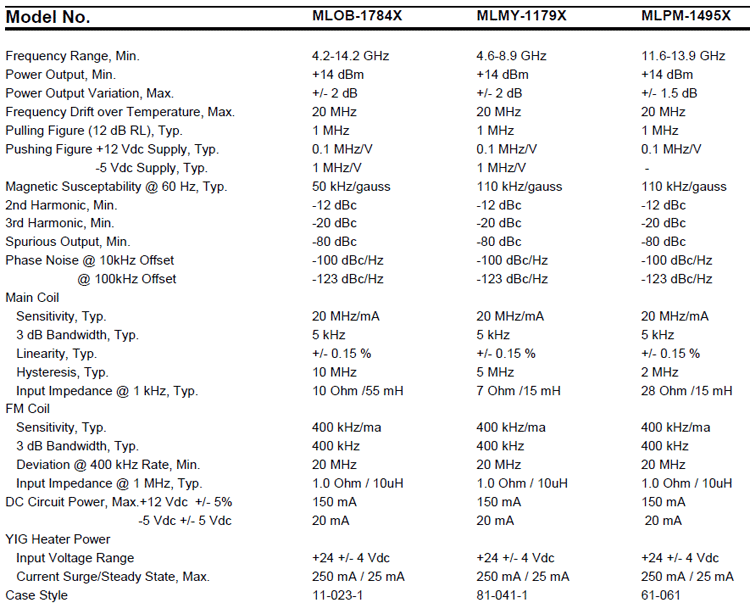 frequency range of 4.6-8.9 Ghz and the Ku-Band frequency range of 11.6-13.9 Ghz. These oscillators have been specifically