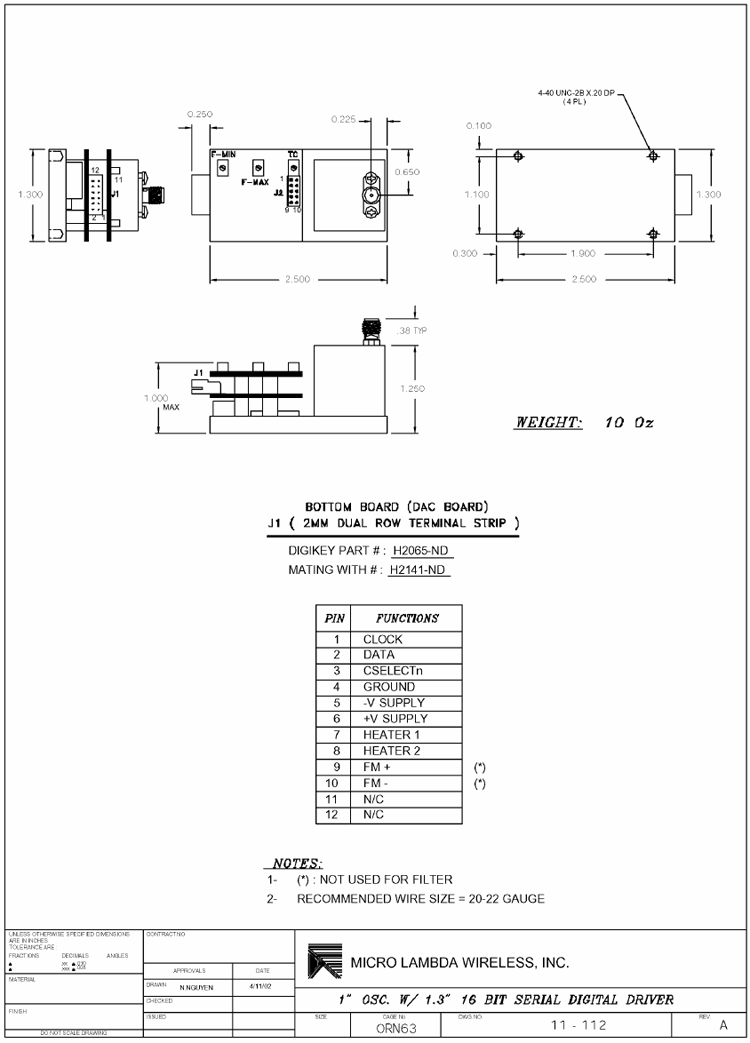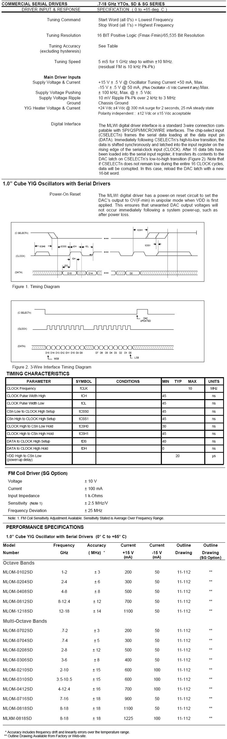 All drivers in this series provide input voltage regulators, reverse voltage / dataline protection and compensation circuits to improve frequency drift. All voltages required by the YIG oscillator, except the heater inputs are supplied by the voltage regulators.