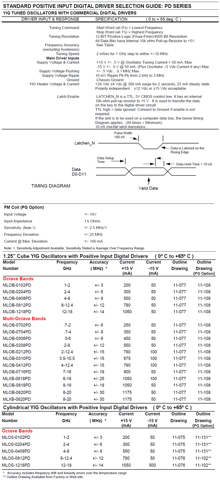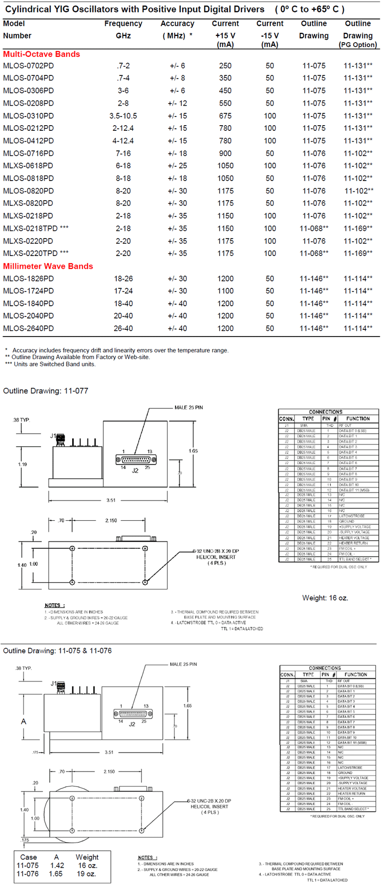 MICRO LAMBDA YIG Oscillators, model type, MLOB, MLXB, MLOS, MLXS and MLXS-T Series are available with integrated digital driver circuits.